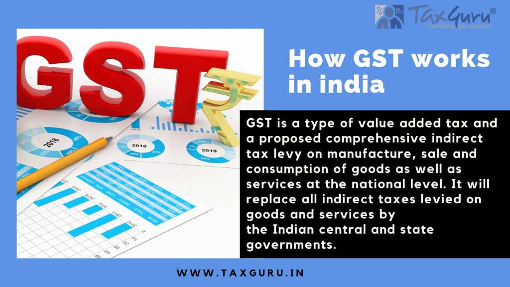 India has adopted a dual model of GST due to its unique federal nature. Under the dual model, tax is levied simultaneously by the Centre and the State on a common base. Under the below paras, we will try and understand how GST works in India –